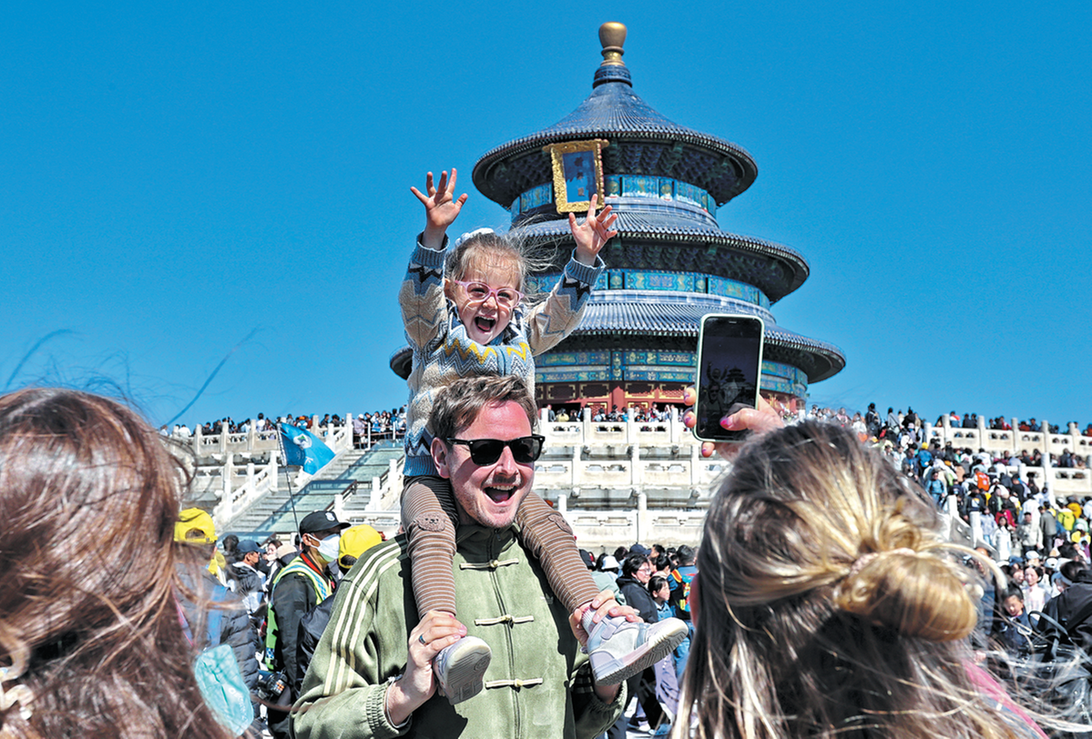Туристи правят снимки пред Залата за молитви за добра реколта в парка Temple of Heaven в Пекин в неделя. WANG XIN/ЗА КИТАЙ ДАЙЛИ