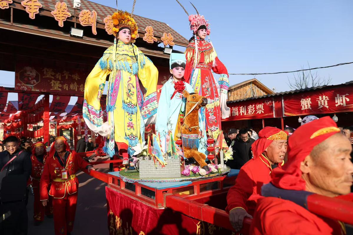 На 17 февруари народни артисти изнасят културно представление в село Лиуджиабао в Тайюан, провинция Шанси. [Photo by Zhu Xingxin/chinadaily.com.cn]